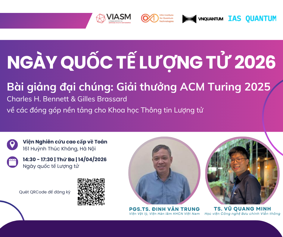 Bài giảng đại chúng tôn vinh Giải Turing Award 2025 được trao cho Charles Bennett và Gilles Brassard nhờ giao thức BB84 đã đặt nền tảng đột phá cho mật mã lượng tử. Lần thứ hai kỷ niệm Ngày Lượng tử tại Viện Nghiên cứu cao cấp về Toán, sự kiện nhằm phổ biến kiến thức cơ bản về công nghệ lượng tử, khơi dậy niềm đam mê nghiên cứu khoa học và nâng cao nhận thức cộng đồng về vai trò quan trọng của lượng tử trong bảo mật thông tin tương lai. Người tham dự sẽ được trực tiếp trải nghiệm công nghệ QKD với giao thức BB84 trên hệ thực nghiệm.