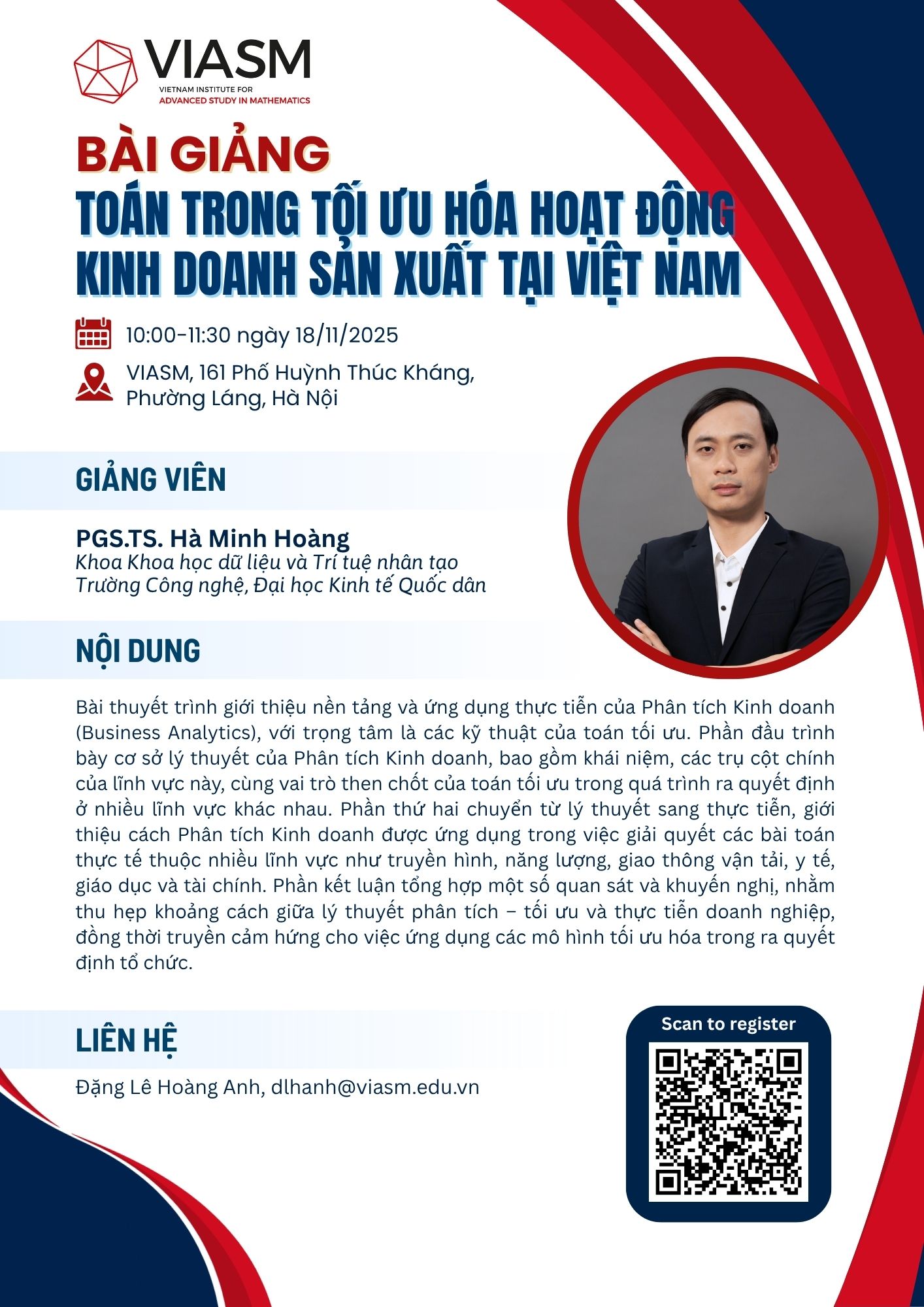 - Thư ký Đặng Lê Hoàng Anh (VIASM) – Email: dlhanh@viasm.edu.vn