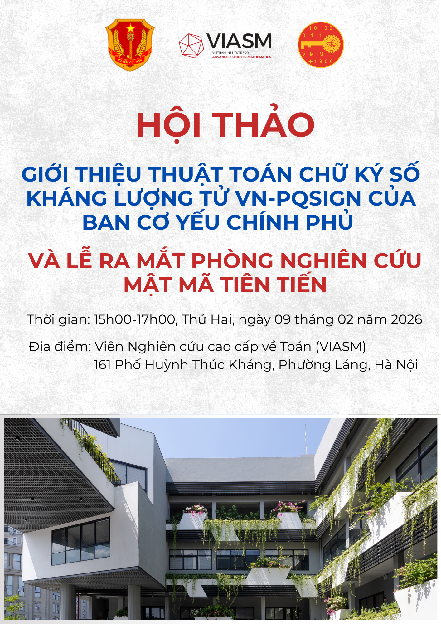 Hội thảo Giới thiệu thuật toán chữ ký số kháng lượng tử VN-PQsign của Ban Cơ yếu Chính phủ và Lễ ra mắt Phòng Nghiên cứu Mật mã tiên tiến