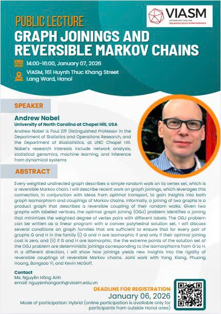 Địa điểm: Institute for Advanced Study in Mathematics (VIASM), 161 Huynh Thuc Khang Street, Lang Ward, Hanoi.