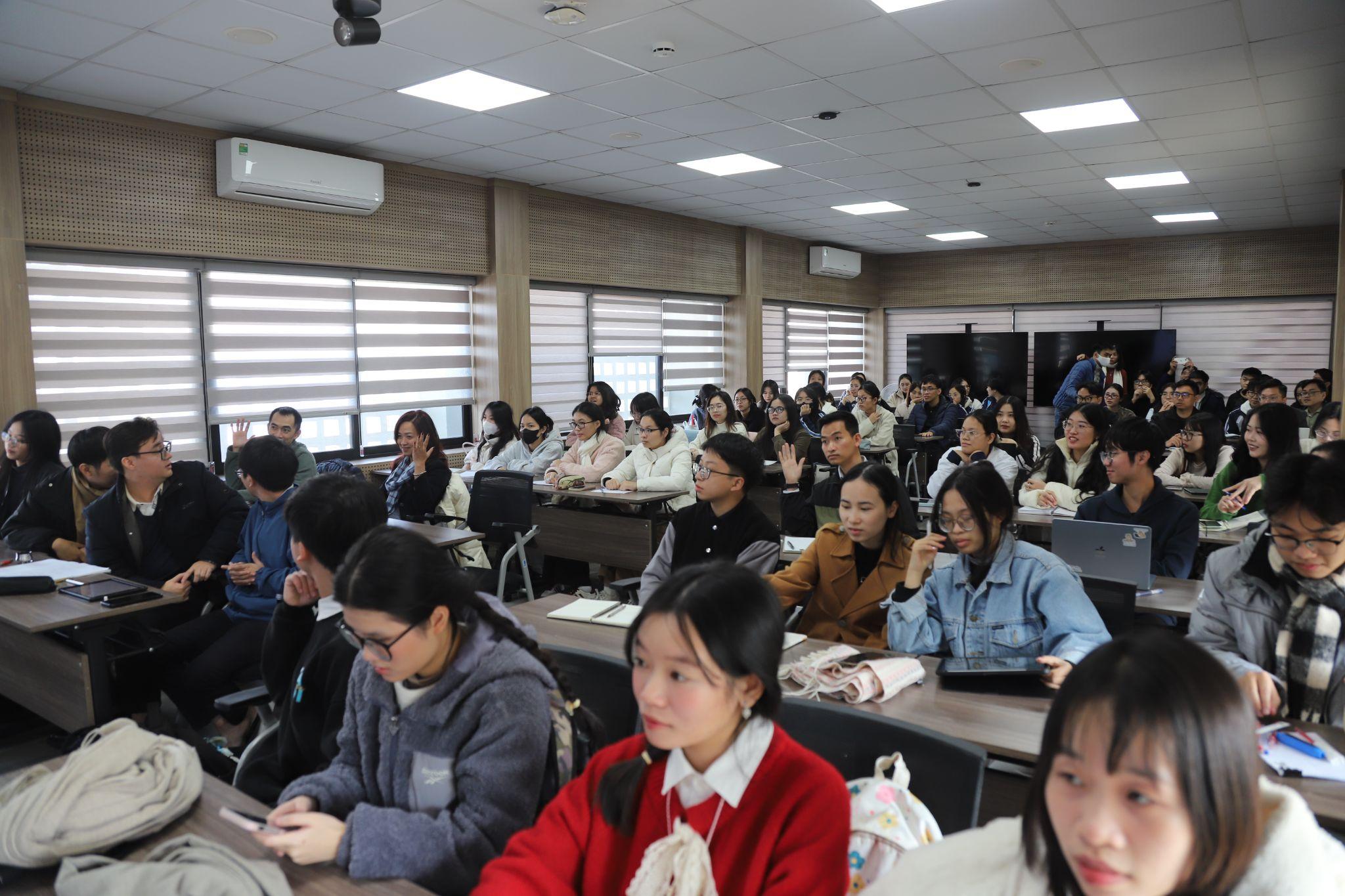Tham gia trực tiếp Bài giảng đại chúng có gần 50 học viên là sinh viên đến từ các trường đại học tại Hà Nội và 40 người tham gia trực tuyến.