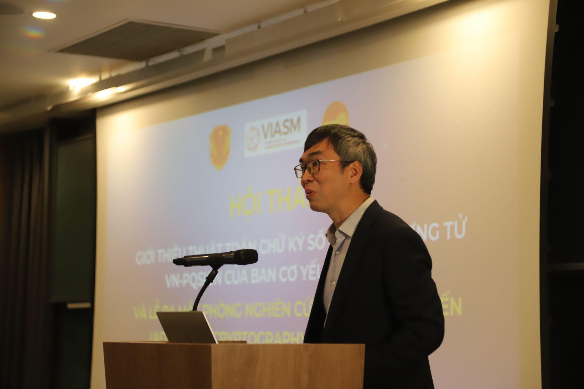 Ông Nguyễn Quốc Toàn, Viện trưởng, Viện Khoa học - Công nghệ mật mã trình bày về thuật toán chữ ký số kháng lượng tử VN-PQsign của Ban Cơ yếu Chính phủ