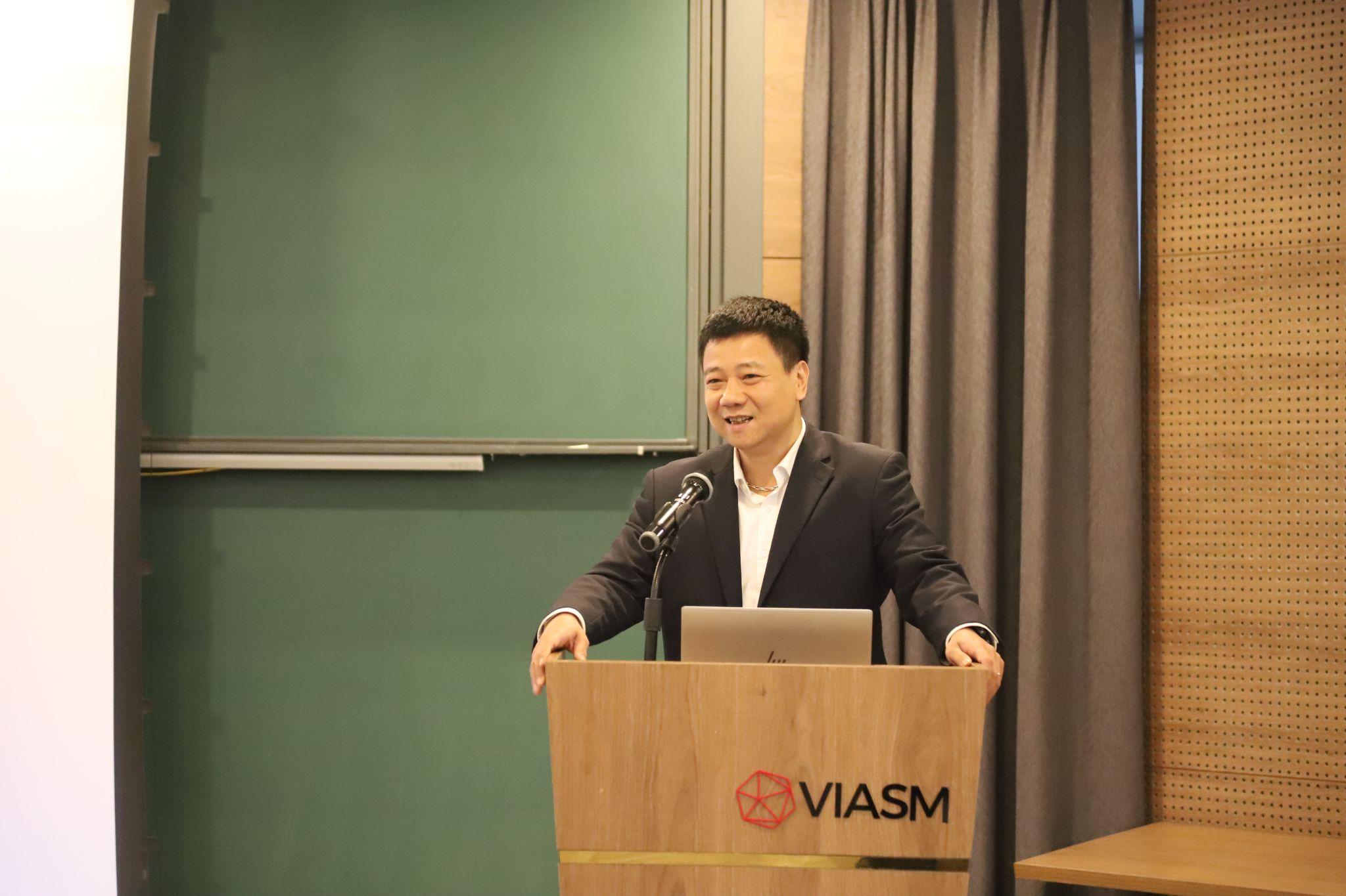 Ngô Bảo Châu, Giám đốc khoa học VIASM phát biểu và trao đổi ý nghĩa của ACR Lab đối với sự phát triển của ngành mật mã ở Việt Nam