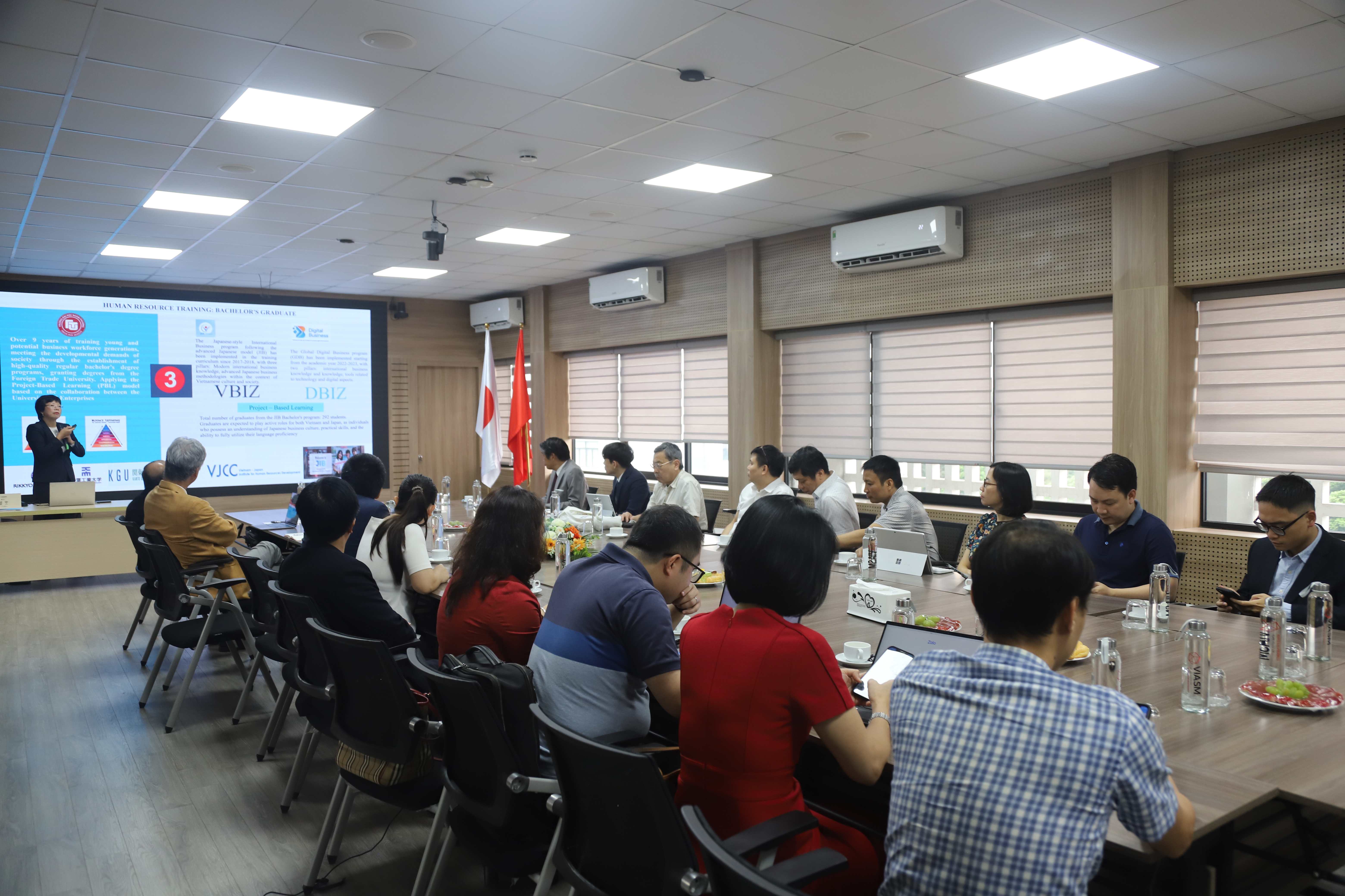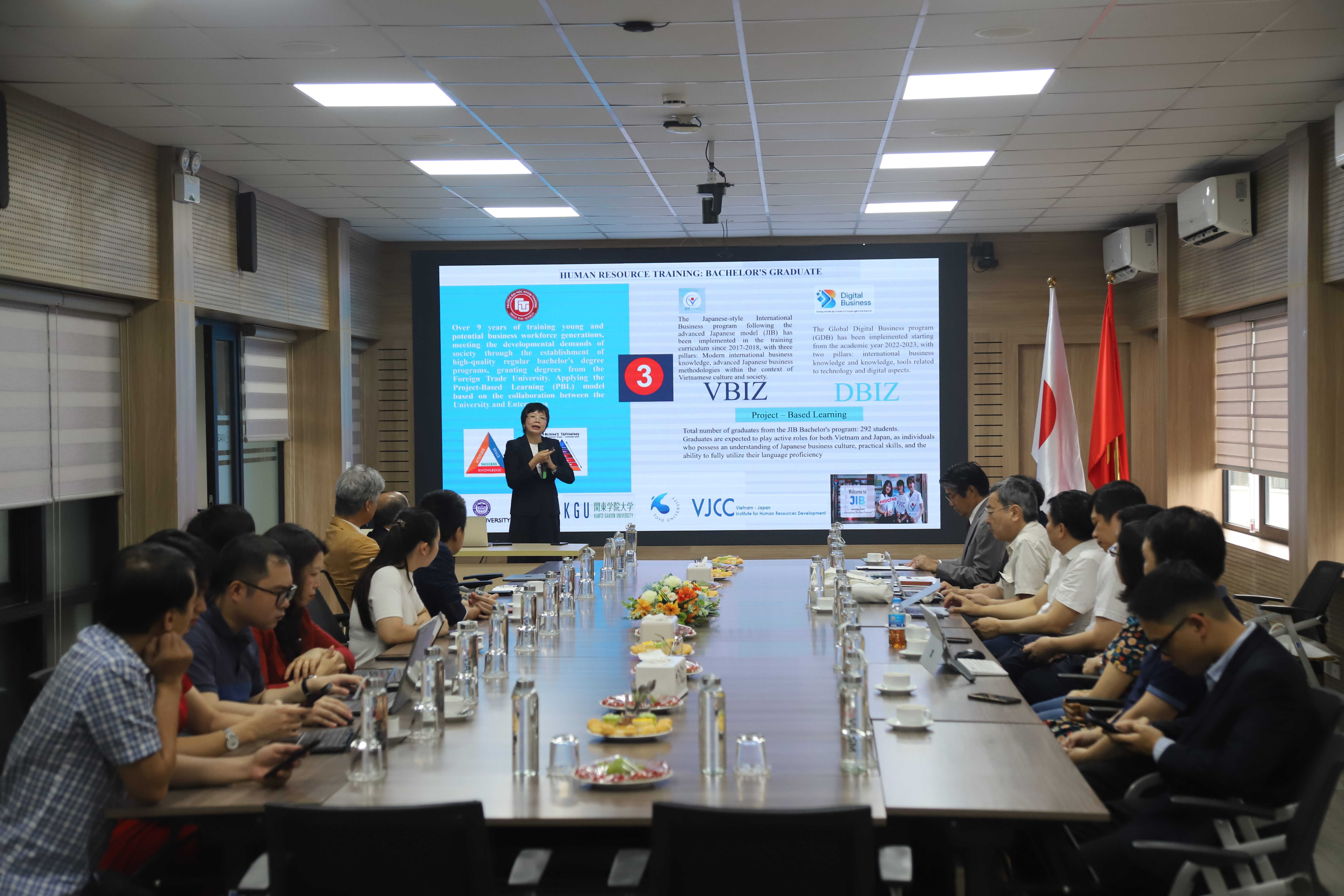 Mở đầu chương trình, tọa đàm đã điểm lại những dấu ấn quan trọng trong nỗ lực nâng tầm năng lực quản trị của doanh nghiệp Việt Nam. PGS. Nguyễn Thị Hiền (Giám đốc VJCC - Trường Đại học Ngoại thương) đã trình bày báo cáo tổng kết chương trình "Phát triển nguồn nhân lực doanh nghiệp Việt Nam" do Chính phủ Nhật Bản tài trợ. Chương trình đã khẳng định vai trò cầu nối quan trọng của VJCC trong việc chuyển giao tri thức quản trị hiện đại, giúp các doanh nghiệp Việt tiếp cận với tư duy kinh doanh chuyên nghiệp và bền vững.