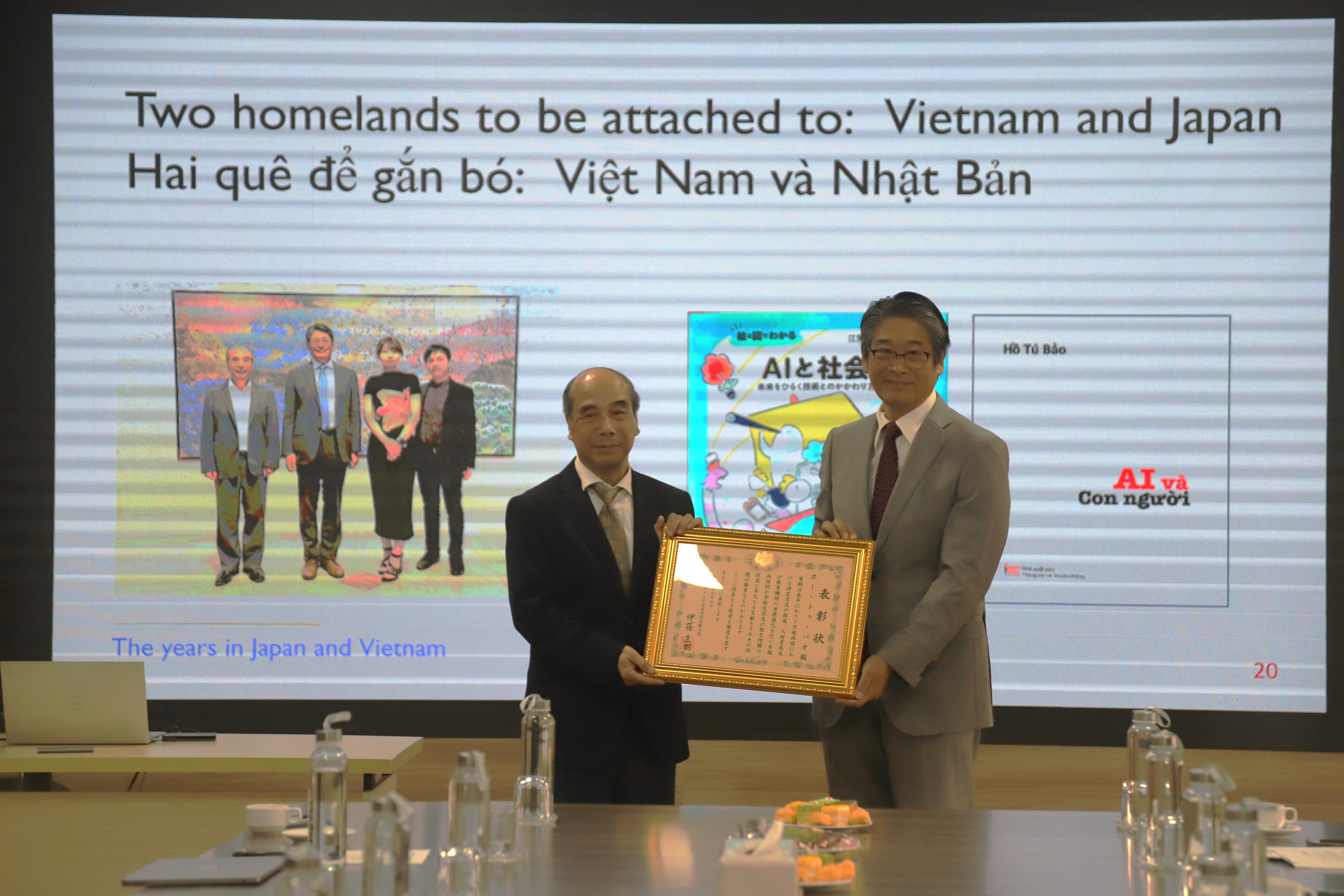 Cũng tại toạ đàm, Ngài Đại sứ Nhật Bản tại Việt Nam Ito Naoki đã trang trọng trao bằng khen cho Giáo sư Hồ Tú Bảo vì những nỗ lực, đóng góp của ông trong chương trình phát triển nguồn nhân lực, đánh dấu một cột mốc thành công trong quan hệ hợp tác Việt Nam - Nhật Bản.