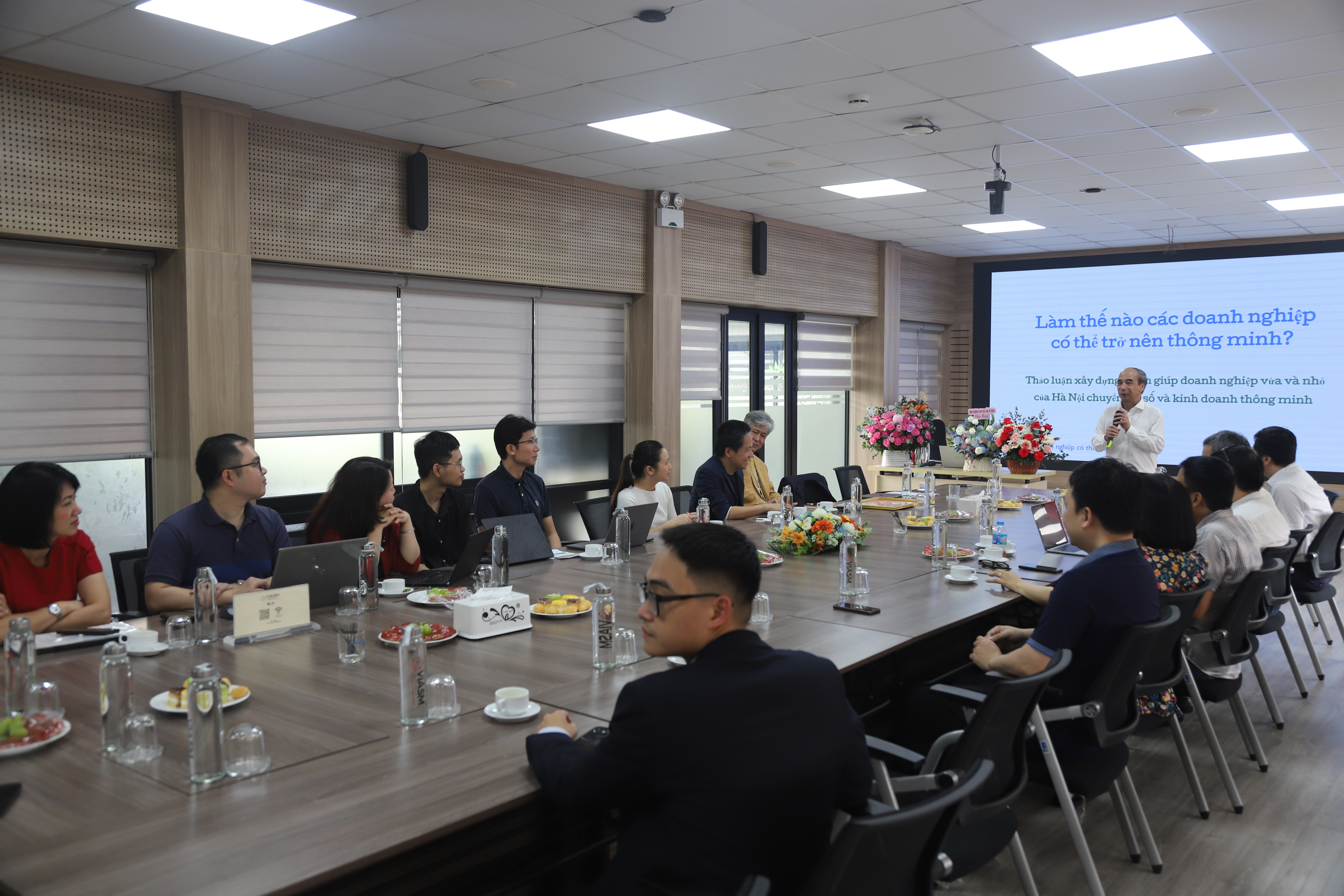 Tiếp sau toạ đàm là phần thảo luận chuyên sâu về AI trong kinh doanh diễn ra sôi nổi với trọng tâm là cách thức đưa AI từ lý thuyết vào thực tiễn kinh doanh. Tại đây, các chuyên gia thống nhất rằng một doanh nghiệp thông minh không chỉ là doanh nghiệp ứng dụng công nghệ, mà là doanh nghiệp biết sử dụng dữ liệu để ra quyết định. AI đóng vai trò là "bộ não" giúp: Tối ưu hóa quy trình vận hành và giảm thiểu lãng phí; Dự báo thị trường và xu hướng tiêu dùng với độ chính xác cao; Cá nhân hóa trải nghiệm khách hàng để tạo lợi thế cạnh tranh. GS Hồ Tú Bảo và các chuyên gia đã phân tích khái niệm doanh nghiệp thông minh dựa trên ba thành phần chủ chốt: Tư duy dữ liệu (Data-driven mindset): Chuyển từ việc ra quyết định dựa trên cảm tính sang dựa trên bằng chứng dữ liệu thực tế; Hệ sinh thái AI: Không chỉ là các công cụ rời rạc, AI cần được tích hợp vào toàn bộ chuỗi giá trị, từ quản trị nội bộ (như nền tảng Base) đến dịch vụ khách hàng (như ví điện tử MOMO hay giải pháp Cloud của FPT); Sự thích ứng: Khả năng học hỏi liên tục của hệ thống để tự tối ưu hóa theo sự biến động của thị trường.
