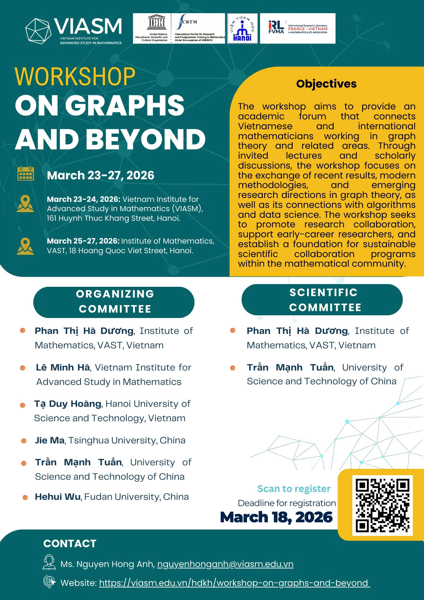 March 23-24, 2026: Vietnam Institute for Advanced Study in Mathematics (VIASM), 161 Huynh Thuc Khang Street, Hanoi.