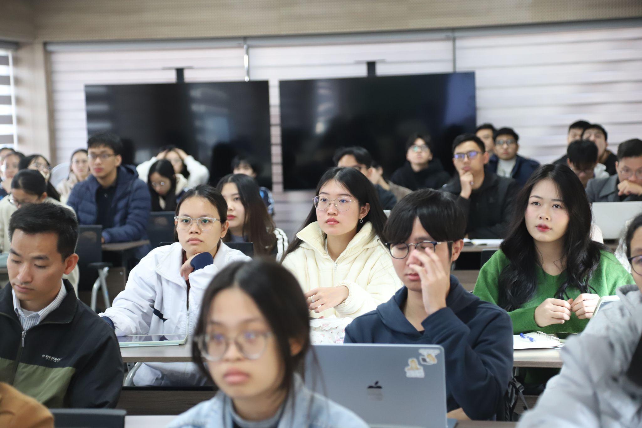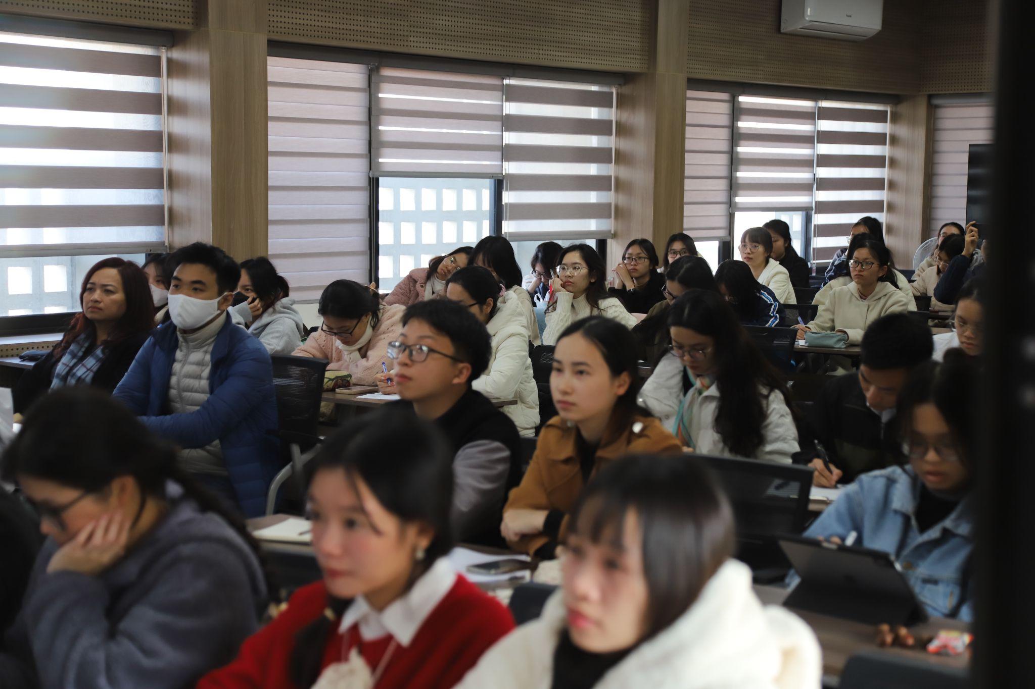 Tham gia trực tiếp Bài giảng đại chúng có gần 50 học viên là sinh viên đến từ các trường đại học tại Hà Nội và 40 người tham gia trực tuyến.